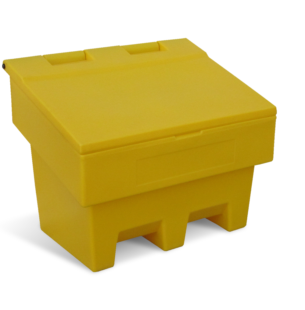 Heavy duty Snowflakes or rock salt storage bin. Durable, UV stable, polyethylene construction, designed to withstand extreme climates. With a capacity of 100 litres, an angled lid allowing rain water runoff and an inter-stackable design, ensures this is the perfect Snowflakes or rock salt storage bin for both residential and commercial use.